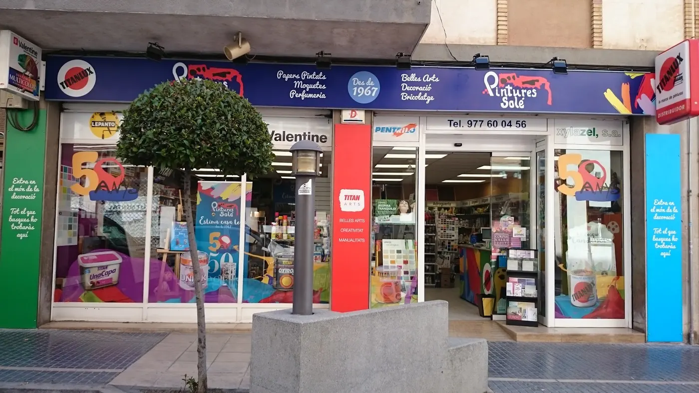Pintures Solé és una botiga de la llar de Valls, al Carrer Abat Llort, orientada a pintures i a tot el necessari per treballar les parets. És una opció pràctica a la ciutat per a qui busca materials vinculats a la decoració de la llar i projectes de pintura. Ubicada al número 22 del Carrer Abat Llort, a Tarragona, resulta útil tant per a compres concretes com per preparar treballs de renovació a casa. Si necessites contactar abans d'anar-hi, pots trucar al 977 60 04 56.